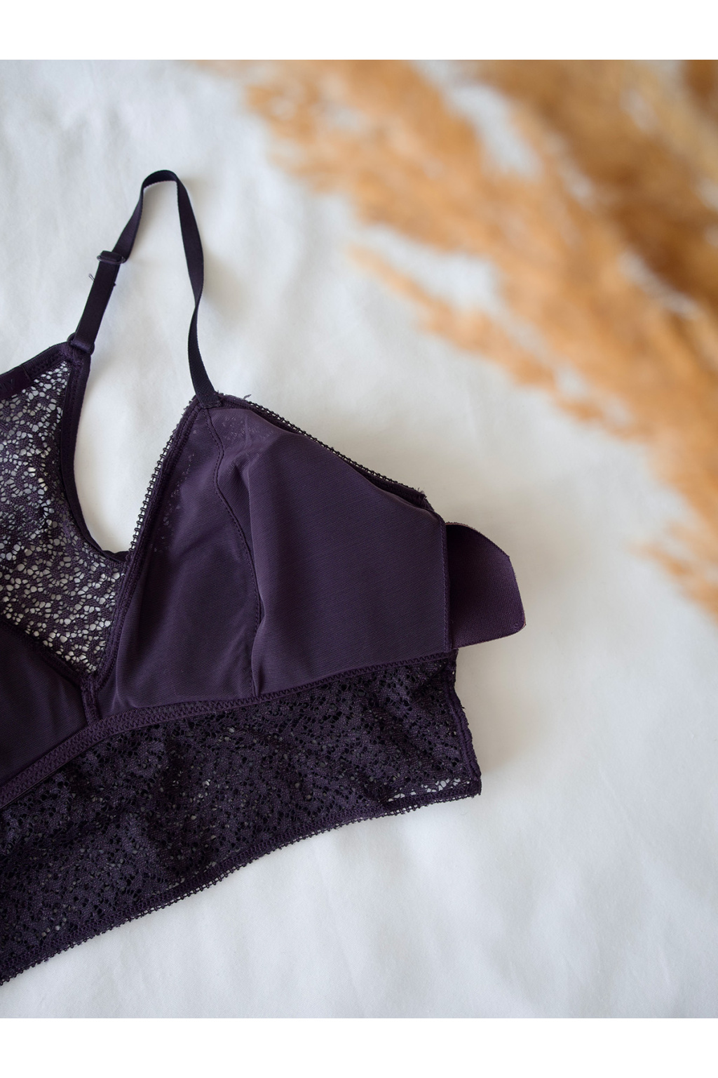 Podprsenka je lehce vyztužená (vycpávky se dají vyjmout). Příjemná krajka a úzká saténová ramínka (nastavitelná) vám zajistí pohodlné nošení po celý den. Podprsenka je bez zapínání a obléká se přes hlavu.