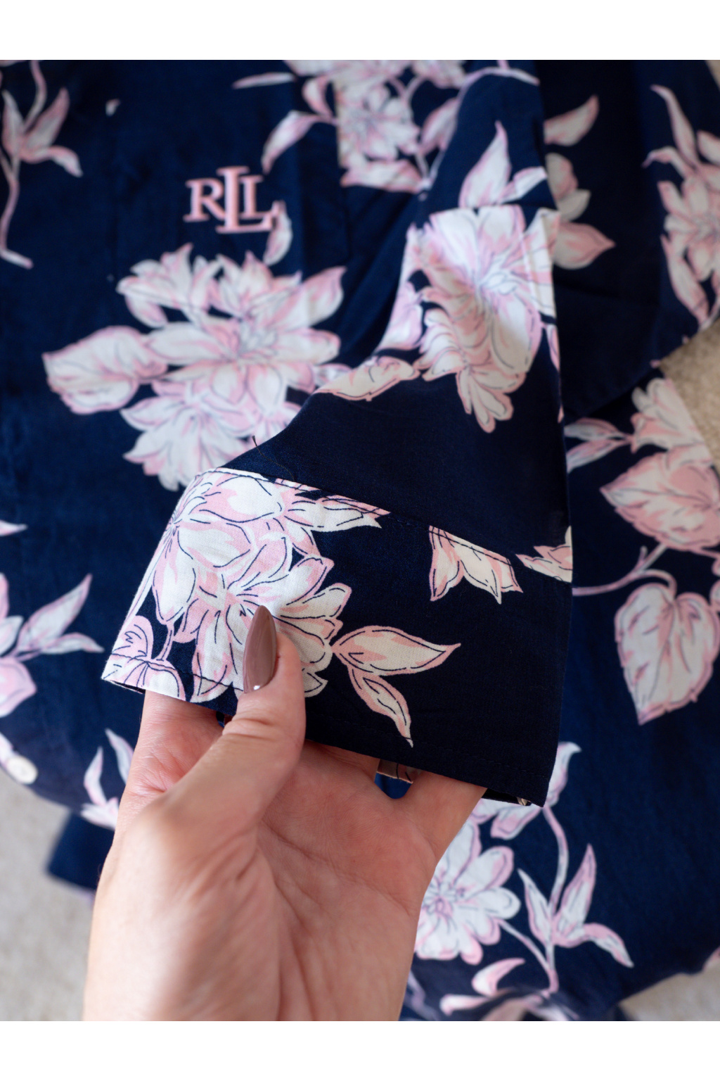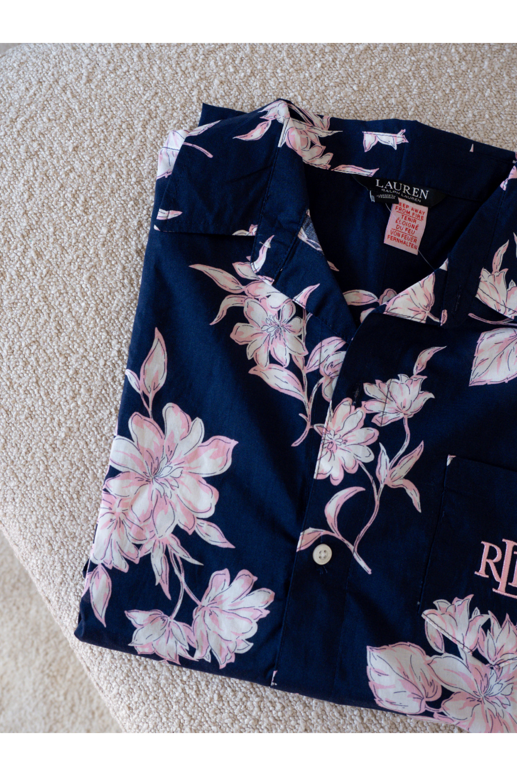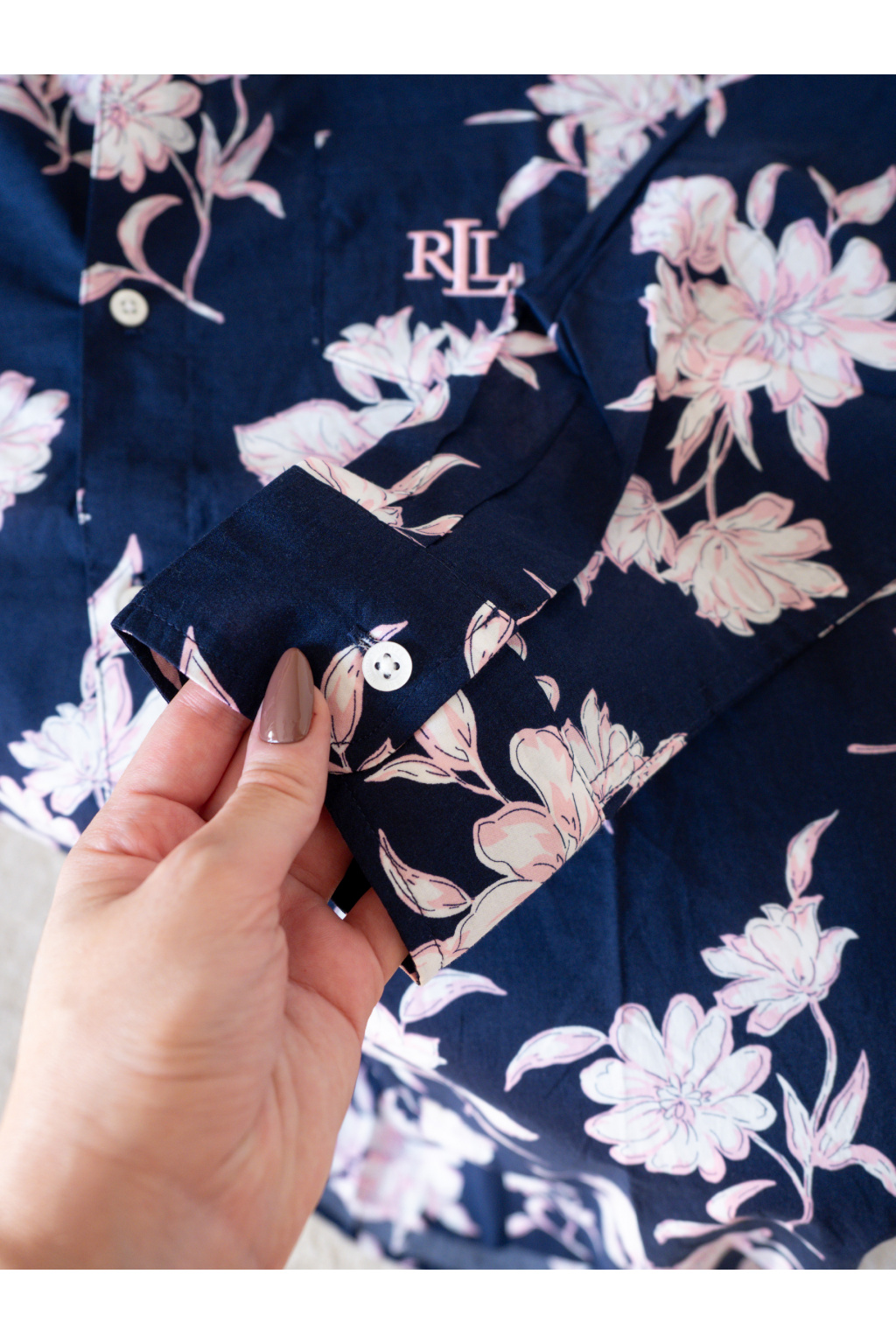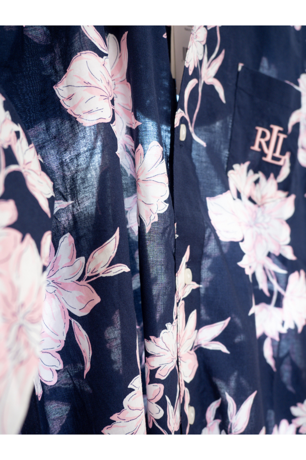 Elegantní noční košile LAUREN Ralph Lauren. 🌸 Objevte lehkost a pohodlí s touto nádhernou noční košilí od LAUREN Ralph Lauren. Tmavě modrý podklad s jemnými růžovými květy dodává romantický nádech a zaručí, že se budete cítit krásně i při odpočinku.